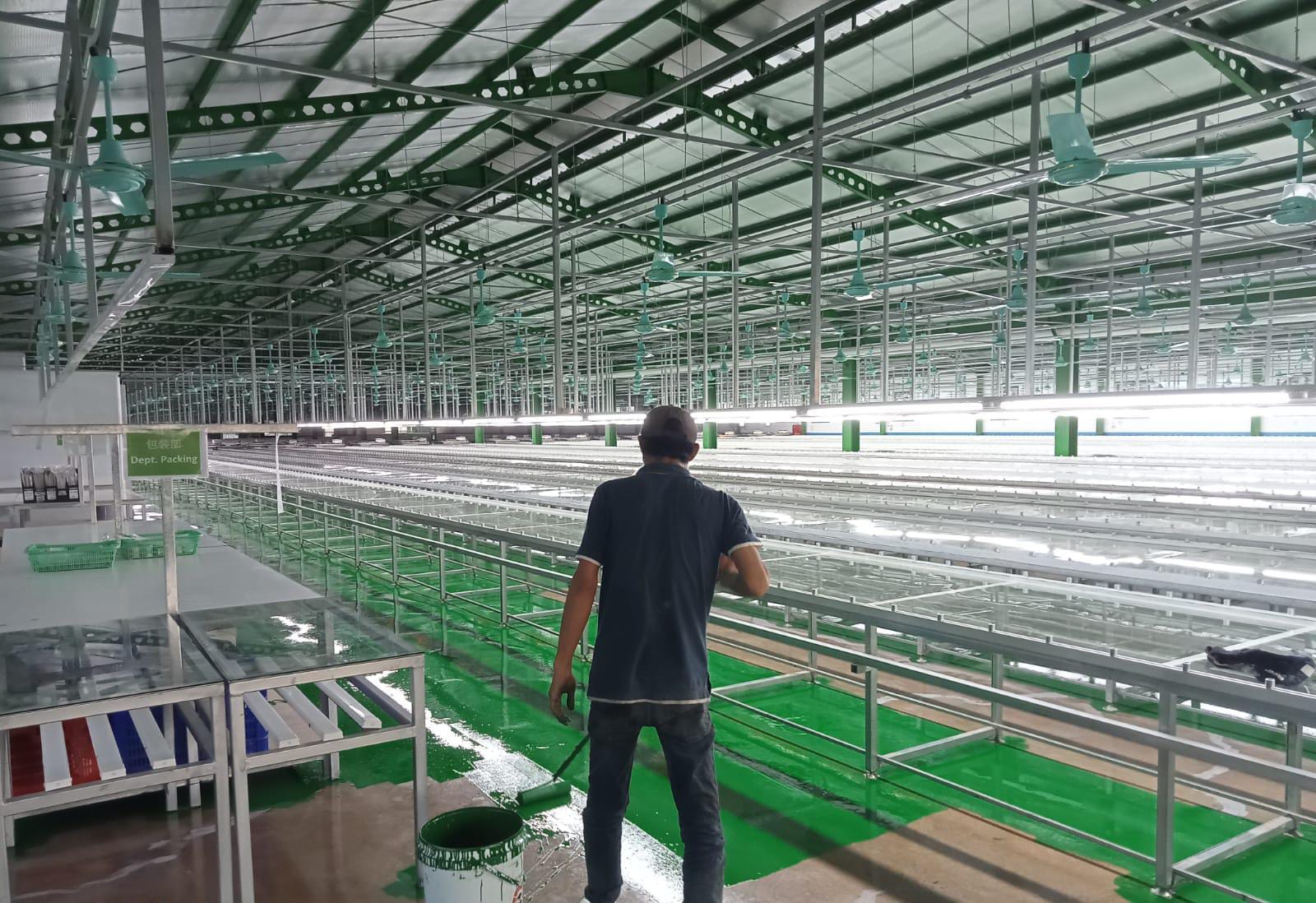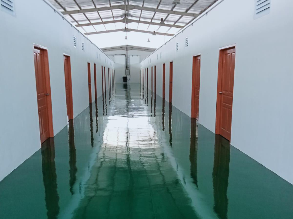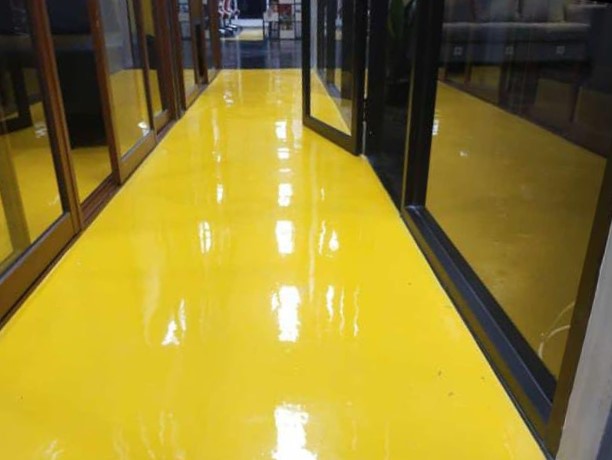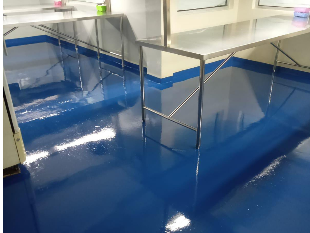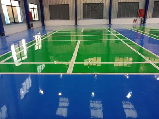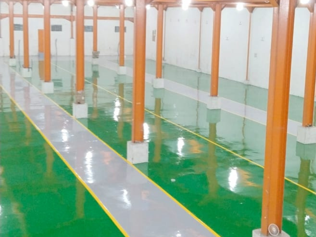 - Lantai Epoxy tahan lama berkekuatan Tinggi: Tahan bahan Kimia, dan Mudah dibersihkan.